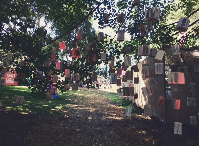 Il y avait aussi de superbes installations. On pouvait trouver au-dessus de nos têtes des livres accrochés aux arbres ou bien de la vaisselle, et sur notre chemin des petites fontaines.